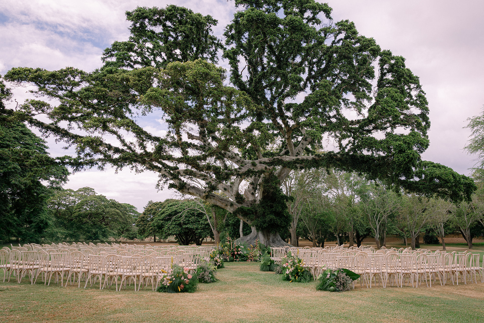 Ho’omaluhia Botanical Gardens does not allow for any amenities to be set up including chairs, arches, or anything similar.