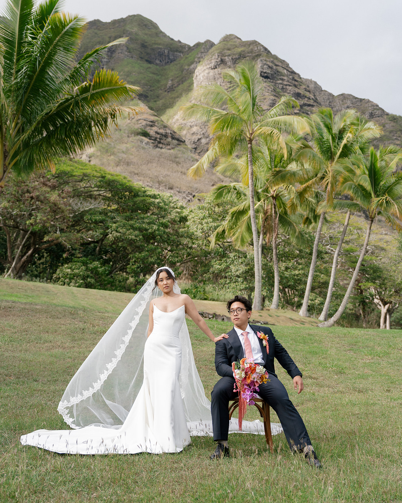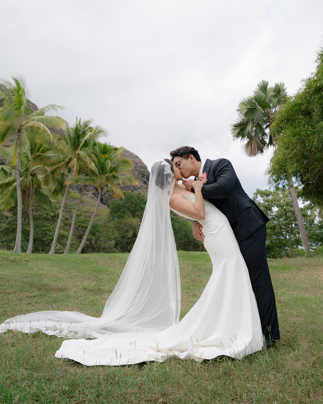 Photography | @mashasakhno.photo Venue | @kualoaranchweddings Planning & Coordination | @tropicalmoonevents Floral Designer | @annielee_floral_designs Hair & Makeup | @revealhairandmakeup Rentals | @alohaartisans Catering | @memoirshawaii Dress Designer | @sarahseven